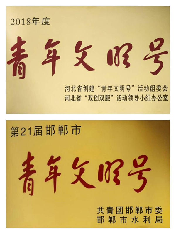 2020年9月9日,共青團(tuán)邯鄲市委授予邯鄲市水利水電勘測設(shè)計(jì)研究院“青年文明號”榮譽(yù)稱號。設(shè)計(jì)院已連續(xù)兩年榮獲省、市“青年文明號”榮譽(yù),一份份沉甸甸的榮譽(yù)熠熠生輝,一顆顆年輕向上的拳拳之心火熱在胸,設(shè)計(jì)院的青年職工在時(shí)代浪潮的奮勇搏擊中,責(zé)任在肩,使命光榮。
