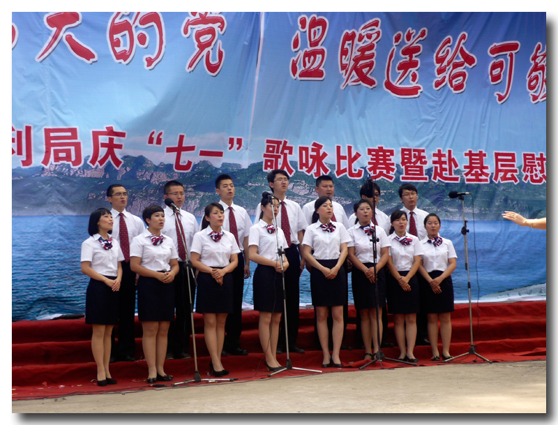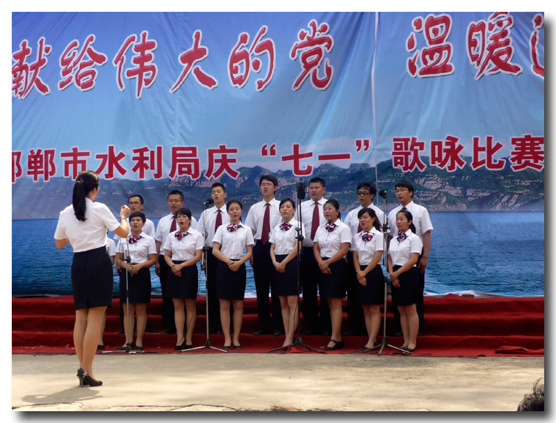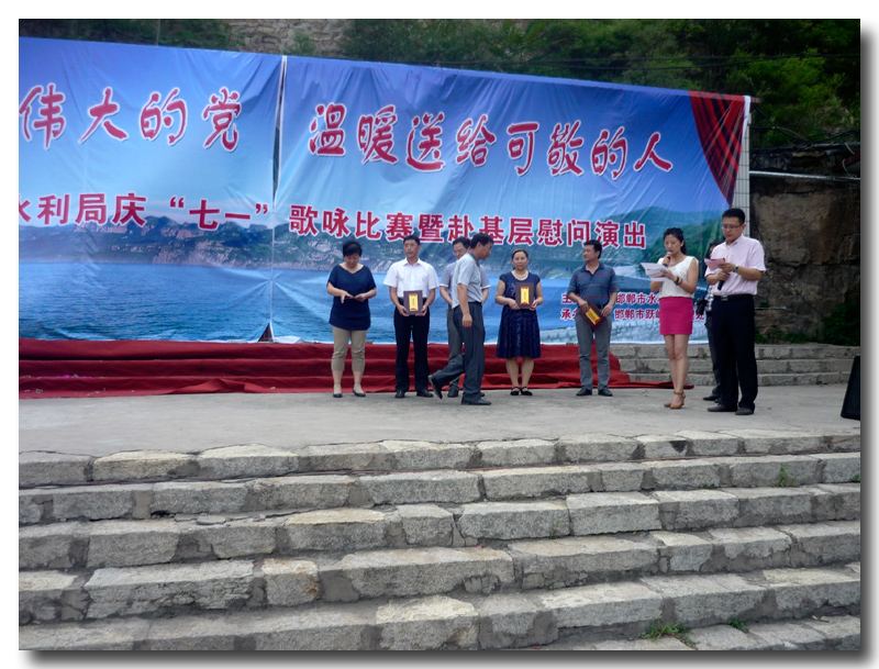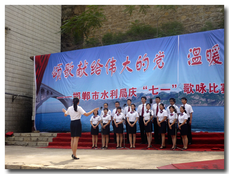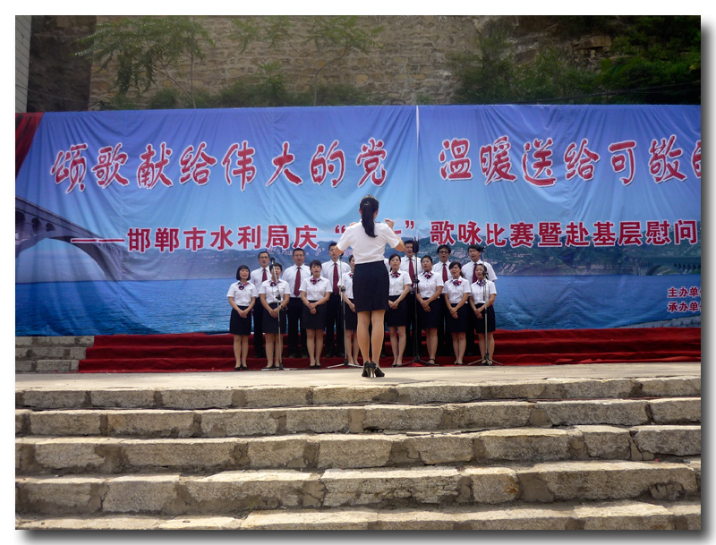 為了慶祝中國共產(chǎn)黨建黨92周年,增強基層黨組織的凝聚力、向心力,豐富基層黨員的組織生活。同時為了進一步弘揚“躍峰精神”,努力營造艱苦奮斗、協(xié)作攻堅的水利文化氛圍,展現(xiàn)我院職工積極向上的精神風(fēng)貌,豐富職工業(yè)余生活。2013年6月28日,我院赴海樂山水電站參加了邯鄲市水利局以“頌歌獻給偉大的黨,溫暖送給可敬的人”為主題的慶“七一”歌詠比賽暨赴基層慰問演出活動。我院精心排練表演的《年輕的朋友來相會》和《打起手鼓唱起歌》的合唱節(jié)目在此次歌詠比賽中,榮獲了三等獎。