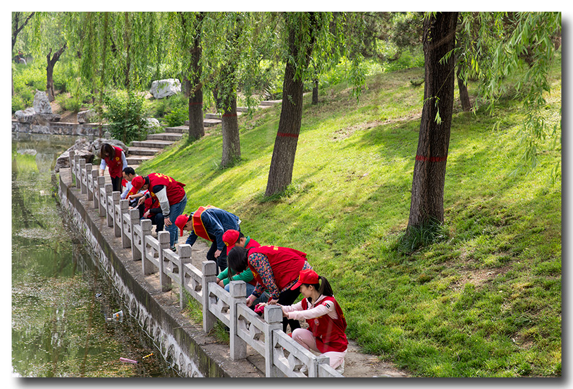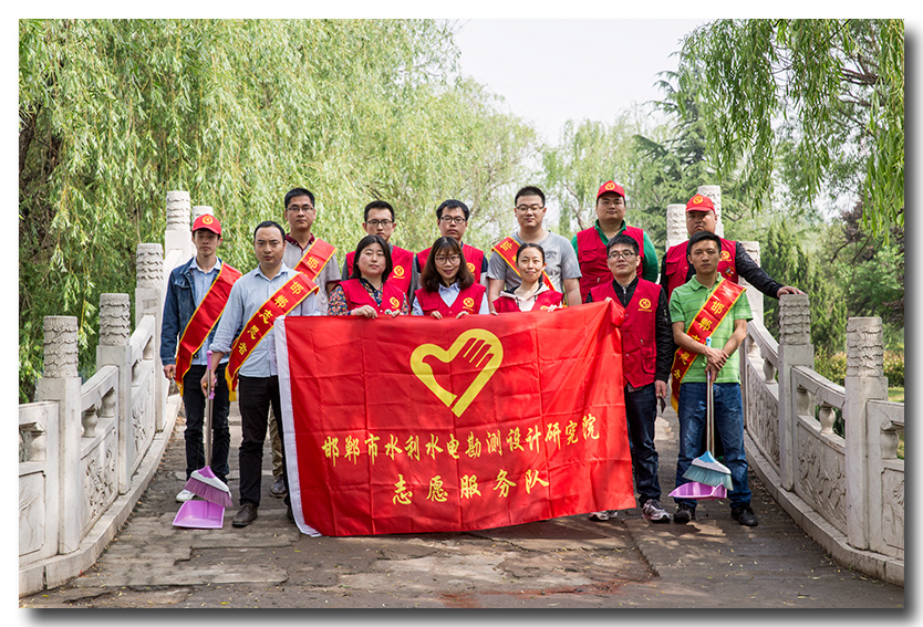 2017年5月4日上午9點,邯鄲市水利水電勘測設(shè)計研究院文明志愿者頭戴小紅帽,身著紅色馬甲,來到滏陽公園東門集合,開始了為時3個小時的清理滏陽公園垃圾活動。