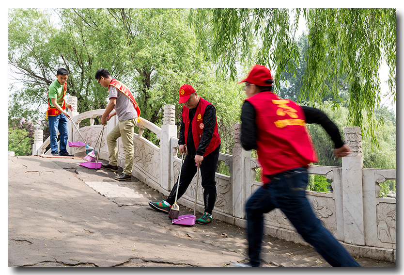 志愿者們進(jìn)入園內(nèi),手里拿著掃把簸箕抹布鏟刀,與清潔工人一起開始清理垃圾,打掃環(huán)境衛(wèi)生。行走的便道上有很多的煙頭、落葉,草叢里有扔掉的白色垃圾,他們就蹲下?lián),石凳邊上的煙盒、零食袋,路面上的口香糖,這些都是影響著滏陽公園的美景啊,志愿者都一一把它們清理的干干凈凈。雖然現(xiàn)在的天氣已經(jīng)開始熱起來,但是志愿者們沒有人抱怨,沒有人停下腳和手,繼續(xù)清理垃圾。